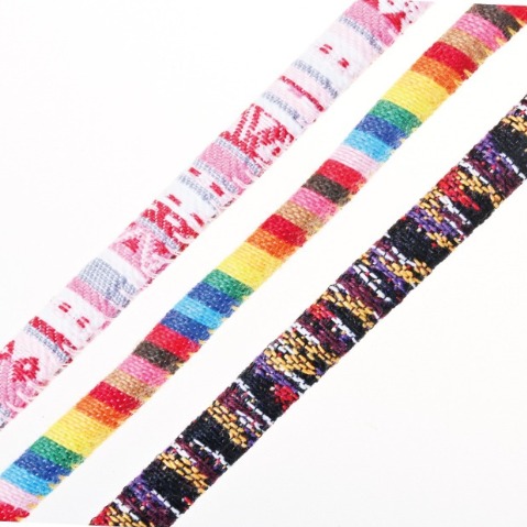 Flat or round shoelace with delicate jacquard patterns.