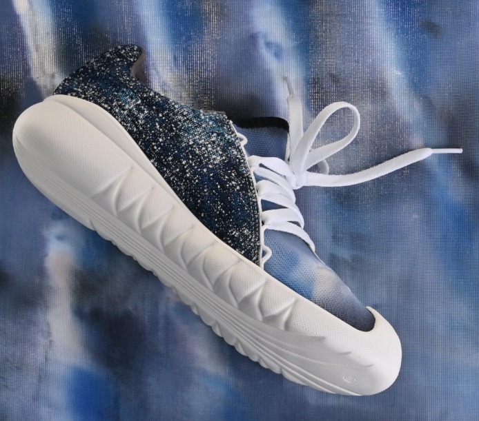 Tenacious and dynamic stretchability with innovative 3D co-molded component as integrated sport shoe upper. Minimized material package of upper to keep the shoe lightweight and breathable.