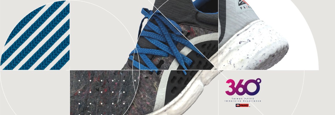 In addition to the auxiliary materials such as webbing and shoelaces, Taiwan PAIHO also introduced a special 4-way stretch knitting machine to actively develop elastic fabrics more superior than the ones in general market. The latest crinkle four-way stretchable fabric has excellent stretchability and three-dimensional appearance. It can be utilized in various merchandises. For the first time, we are able to unveil this Taiwan PAIHO material inside out through a 360° immersive experience!