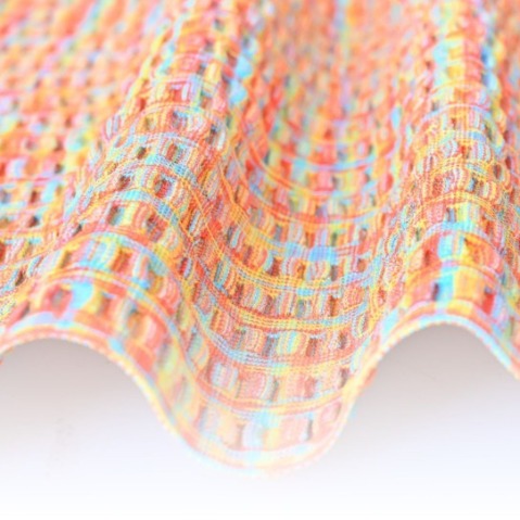 4-way stretchable fabric with crinkle textile structure and PAIHO multi-color space-dyed yarn.