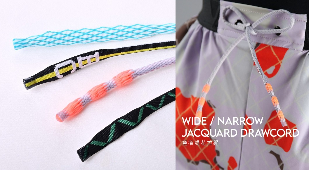 PAIHO classic one-piecewide/narrow jacquard drawcords. Soft silicone dipping is available for drawcordtips