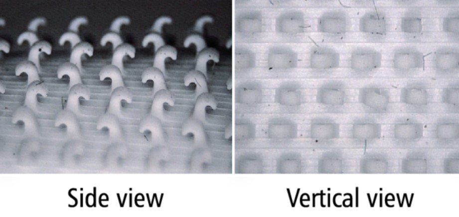 • The continuously molded hook tape has stable quality and high precision with 900 hooks per square inch.