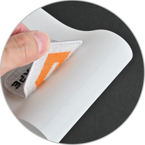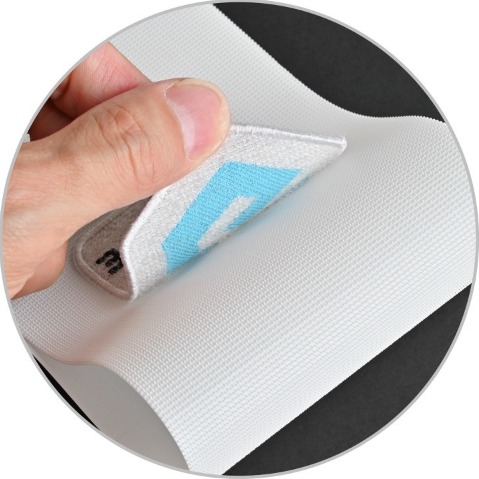 One-piece woven labels with loop at backside (no additional lamination process) and bring soft hand feel.
