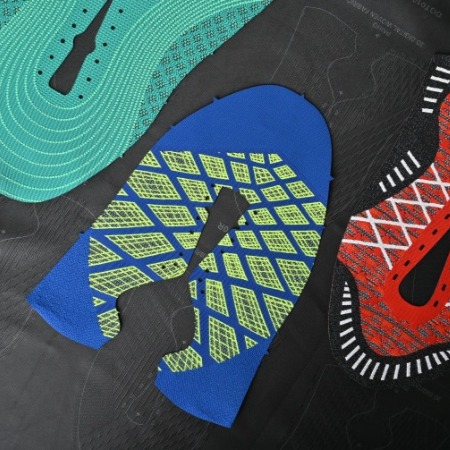 • Integration of over 15 yarn types such as TPU yarn, recycled yarn, metallic yarn, space-dyed yarn, and elastomeric yarn to create various textures & patterns, lightweight function, and breathability.